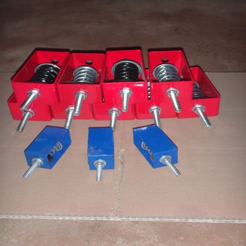 XHS型吊式彈簧減振(震)器:XHS型吊式彈簧減振(震)器用在風(fēng)機(jī)盤管等小型設(shè)備減振中,在中央空調(diào)安裝工程時(shí),風(fēng)機(jī)盤管的減振安裝可以改善風(fēng)盤的運(yùn)行狀況,延長使用壽命,同時(shí)減少對(duì)周圍環(huán)境的噪聲和振動(dòng)污染。根據(jù)風(fēng)機(jī)盤管的實(shí)際安裝要求設(shè)計(jì)生產(chǎn)了HS型風(fēng)機(jī)盤管專用減振器,該產(chǎn)品具有阻尼大,自振頻率低,安裝方便,造價(jià)低廉,特別適用于對(duì)人居環(huán)境有較高要求的場所安裝使用。風(fēng)機(jī)盤管的減振安裝可參照,國家建筑標(biāo)準(zhǔn)設(shè)計(jì)圖集01(03)K403《風(fēng)機(jī)盤管安裝》。
